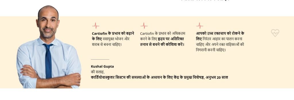 - धमनी सफाई और उच्च रक्तचाप के क्षेत्र में दुनिया भर के विशेषज्ञों की सर्वोत्तम प्रथाओं के आधार पर Cartiofin विकसित किया गया है।